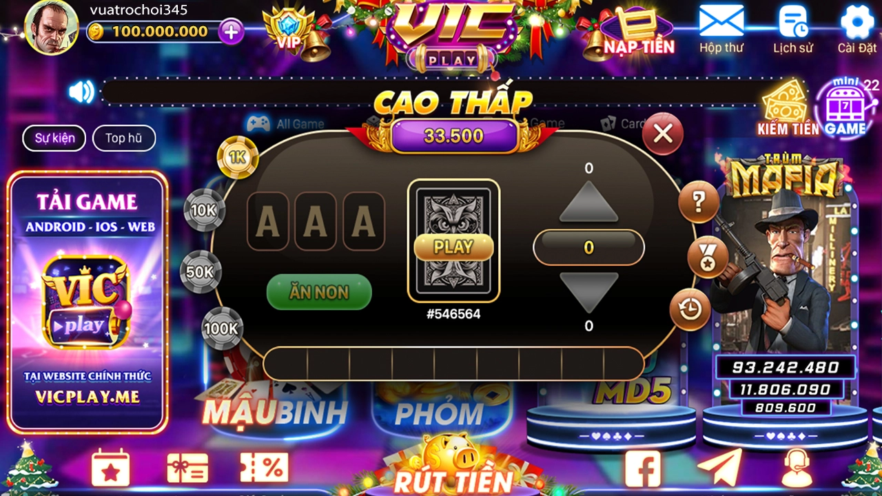 Ngoài ra, bạn cũng có thể truy cập vào trang web của VIC Play và đăng nhập bằng tài khoản đã đăng ký để tham gia chơi trực tiếp trên trình duyệt của điện thoại hoặc máy tính.